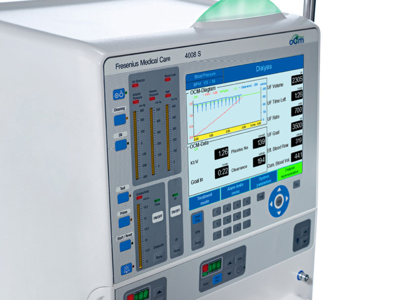 德國費森尤斯4008系列血液透析機具有以下性能優(yōu)勢,1、先進的設計理念:容量平衡腔控制的脫水模式;獨一無二的組件化設計;水電分離的設計理念。2、嚴謹精密的工藝:超濾(脫水)精度;功能完備,一切以患者治療為中心進行設計。3、治療的有效性:個體化治療;該產(chǎn)品不僅具有靜脈壓監(jiān)測,同時還配備了動脈壓監(jiān)測來保障透析中的安全;適用于各種透析器;辨別真假漏血。4、設備的安全性:擁有自檢功能;配有雙CPU;每臺儀器配有UPS不間斷電源,即使在停電時也能保持設備運行30分鐘以上;具有五種先進的消毒模式供選擇;可以設置成使用任何其它品牌設備的透析液,通用性強;信息提示功能,有些信息顯示在屏幕上,可以幫助操作人員減少誤操作。